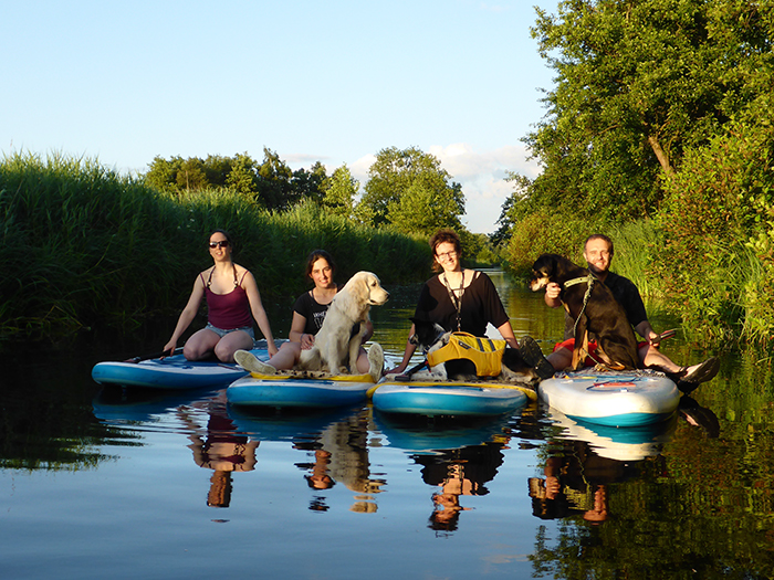 If a rental, especially a dog-friendly one, is available in your area, it’s a great way to get to know the feeling of paddling, the type of boards and a test to see if you and your dog enjoy it. Both Ravasz and Mogwai had a great time (although Ravasz found out that he couldn’t walk on water lilies), but of my current dogs, Oona isn’t much of a fan (although she jumped on a few weeks ago).