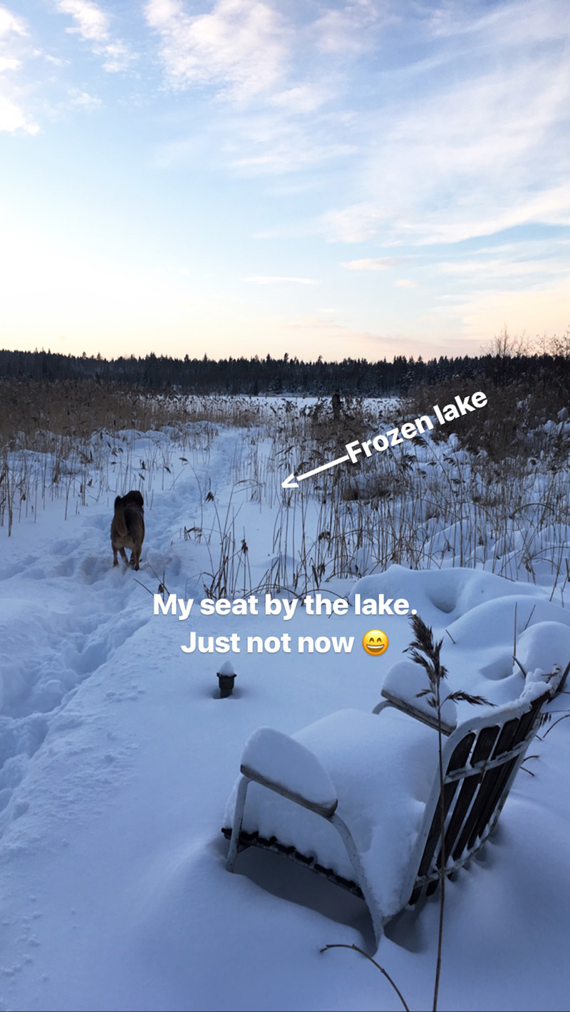 In case you remember this spot from summer, it’s the pier from our garden to the lake. Last year was terribly dry, that’s why we have so much grass. At this moment we cross it and just walk all the way to the open lake!