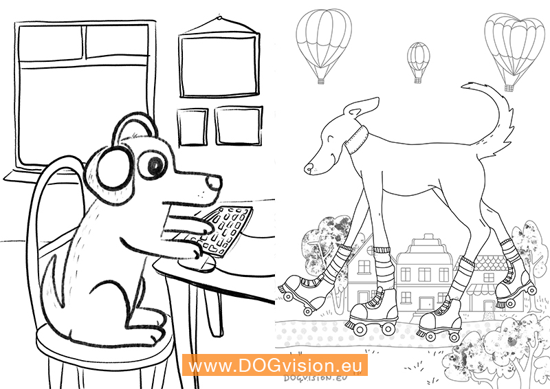 The coloring pages of this new stay-at-home- week were inspired by working from home – and what happens often during work? Daydreaming! ? Once again I left the view from the window and the frames on the wall empty so that you can give it your own interpretation if you want to.